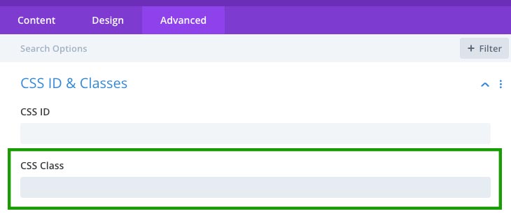 Gå till Inställningar > Avancerat. Klassen lägger du på “CSS Class”