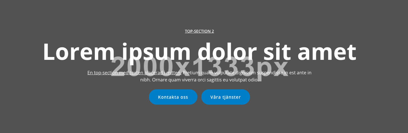 På alla top-section sektioner kan man enkelt ställa höjd och bakgrundsbild/video själv.